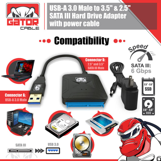 USB 3.0 to SATA III Hard Drive Adapter for 2.5" 3.5" HDD SSD with 12V 2A Power
