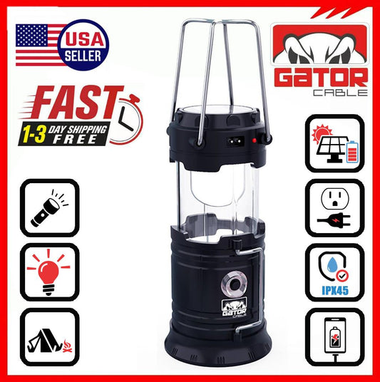 Solar Portable Rechargeable LED Camping Lantern Flashlight Lamp USB Power Bank