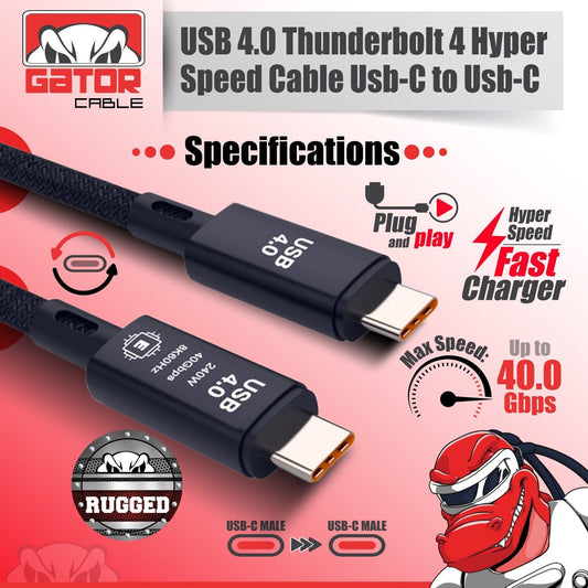 Thunderbolt 4 3 USB-C 4.0 Cable Charger Data 40Gbps PD 240W 8K Video Display UHD