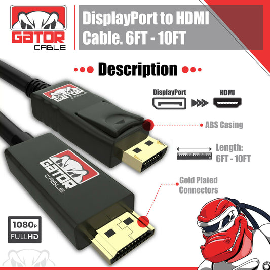 Display Port to HDMI Cable DP Adapter Converter Audio Video PC HDTV 1080P 60Hz