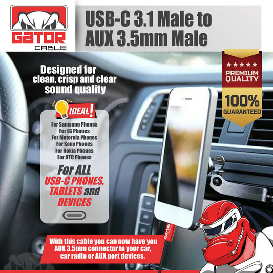 USB-C to AUX 3.5mm Cable Audio Adapter For S9 S10 S20 S21 S22 S23 S24 Note 8 9