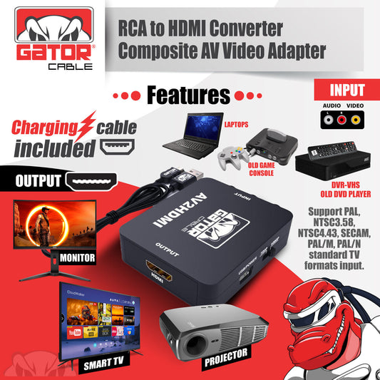 RCA AV to HDMI HD Converter Adapter Composite 3RCA CVBS Audio Video Wii NES SNES