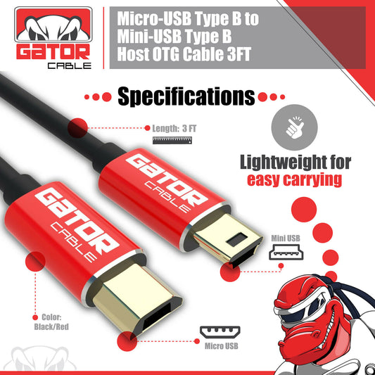 Micro USB to Mini USB Male Host OTG Adapter Converter Cable Charger Cord 3FT