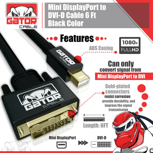 Mini Display Port mDP Thunderbolt To DVI-D Cable Adapter Converter HD 1080P 6FT